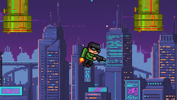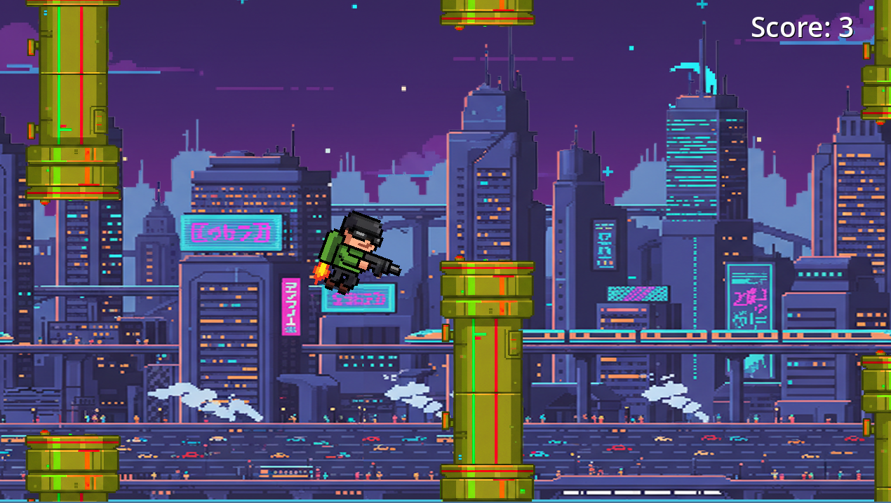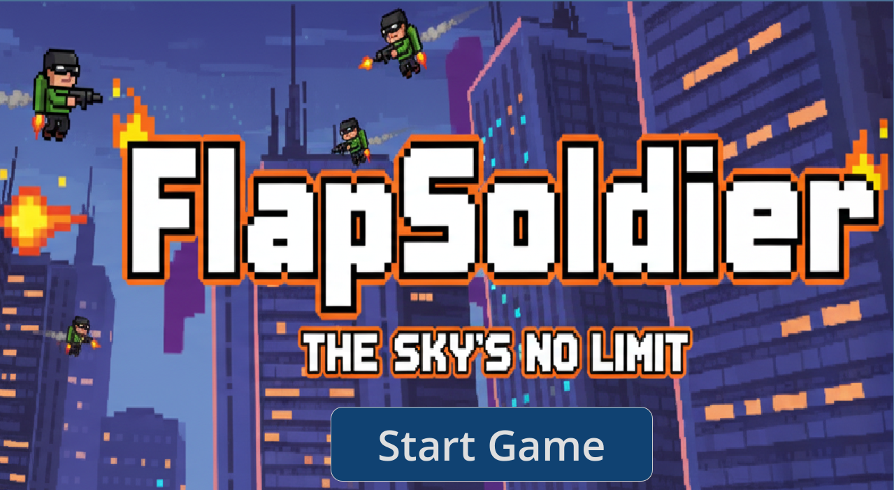 Inspired by Flappy Bird, featuring a soldier who flies and dodges obstacles.